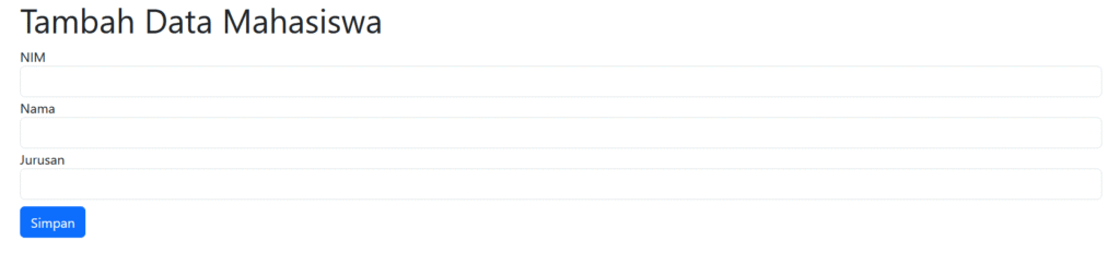 Selanjutnya, kita juga akan membuat halaman create sederhana menggunakan Bootstrap. Kodenya sebagai berikut: