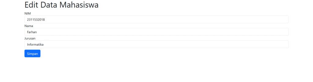 Jika kita klik tombol edit pada salah satu data, akan tampil seperti berikut:
