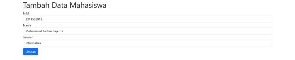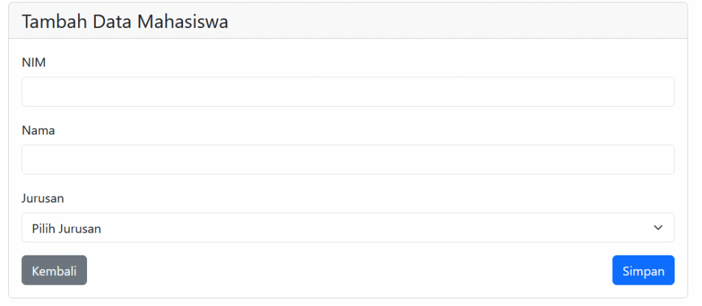 Ketika kita mengklik tombol tambah data, akan muncul halaman create sebagai berikut:
