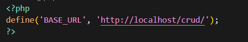diakases dari kelas manapun, pada praktikum ini akan membuat variable constant dengan nama BASE_URL yang berisi strng base url dari project yang akan dibuat. Tambahkan kode program berikut pada Config.php.