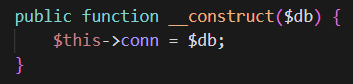 - Buat fungsi constructor yag berisi memanggil koneksi database seperti gambar berikut.