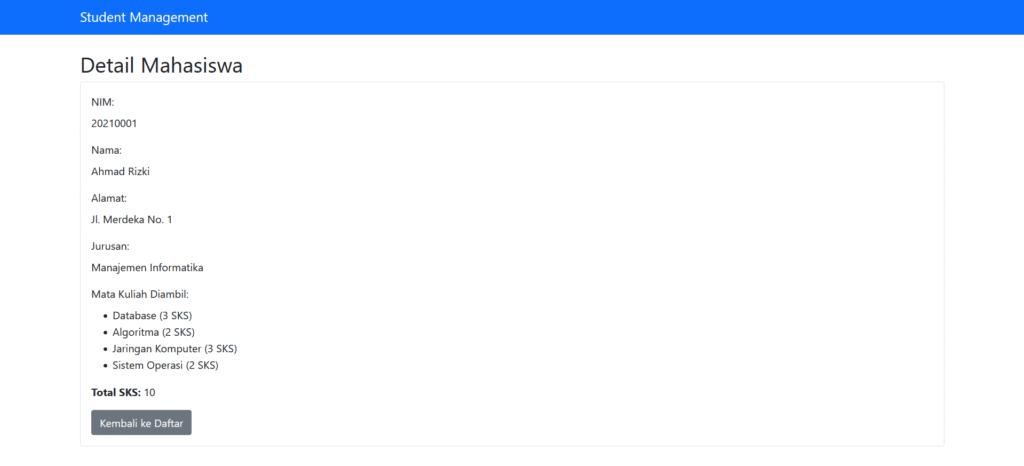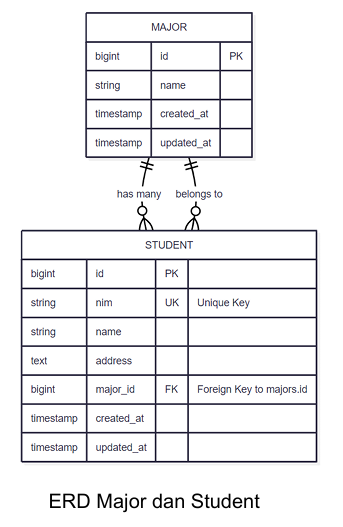Pada pertemuan kali ini, kita akan membuat sistem akademik sederhana dengan relationship: