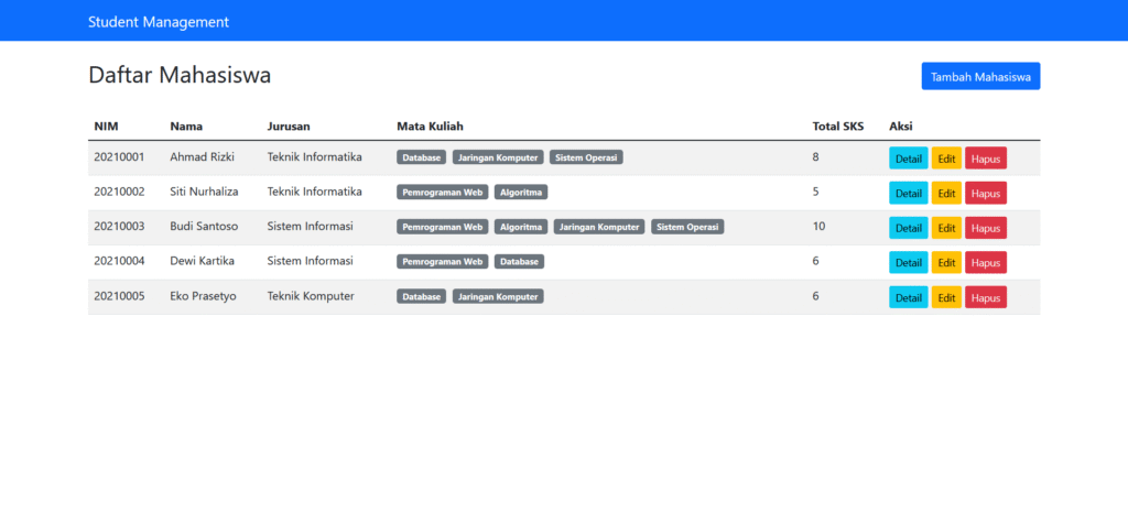 Pertama, kita ubah terlebih dahulu di StudentController. Tambah kode berikut di Index()