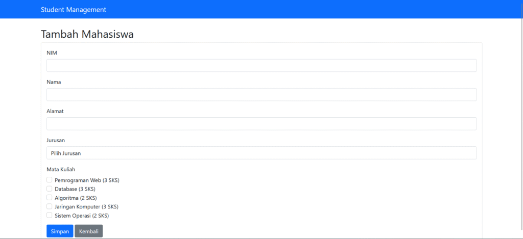 Buat file pada resources/views/students/create.blade.php. kodenya adalah seperti berikut: