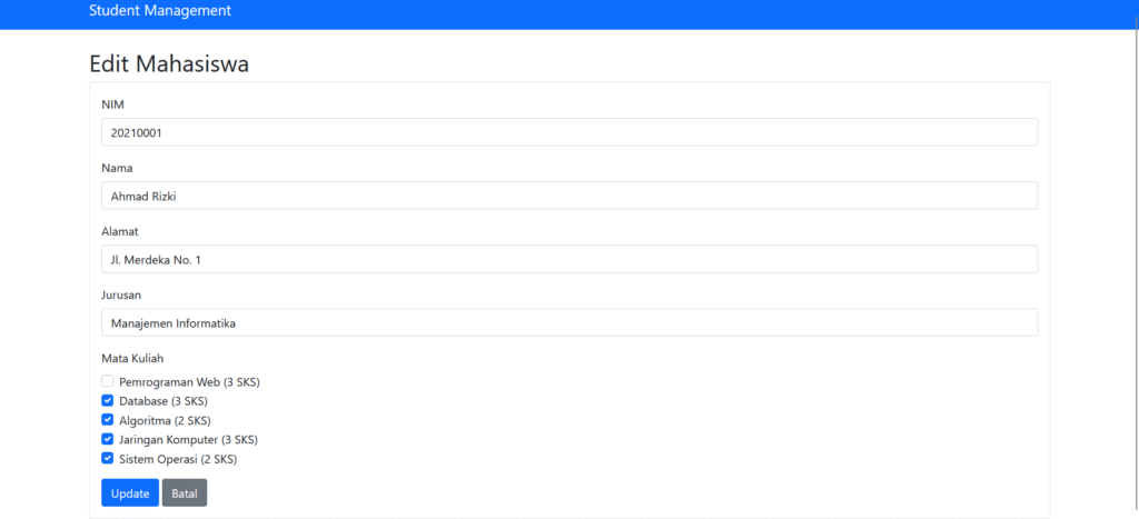 <label class="form-label">Mata Kuliah Diambil:</label>